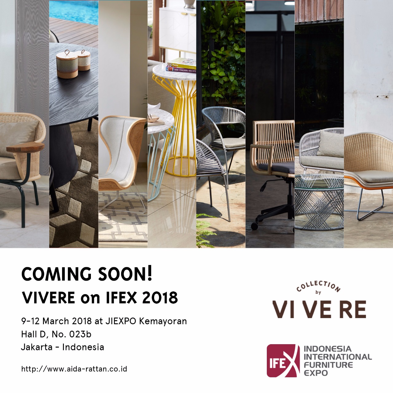 VIVERE along with AIDA Rattan, a subsidiary of VIVERE Group, will participate in the International Exhibition Furniture & Craft, Indonesia International Furniture Expo / IFEX 2018, at Jakarta International Expo (JIExpo) Kemayoran Jakarta, Indonesia from 9 to 12 March 2018. This is the 5th time that VIVERE participates in such event, consistently introducing rattan products to worldwide market. VIVERE keep expanding the collection to always give you something fresh year to year.